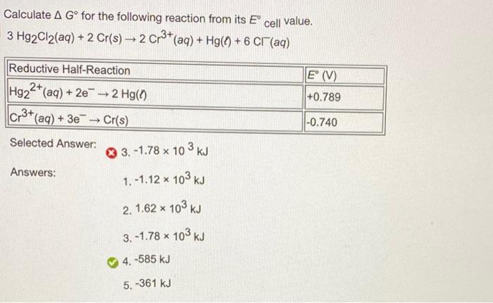 Calculate A Gº For The Following Reaction From Its E Chegg Com
